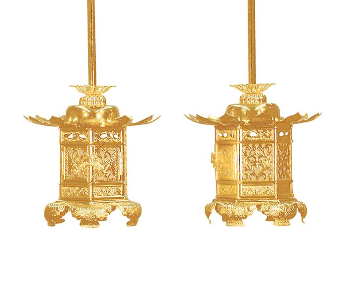 六角神前猫足 真鍮吊灯篭(西)コード無 規格 1.8寸 実寸 高10.5cm×巾10.0cm -