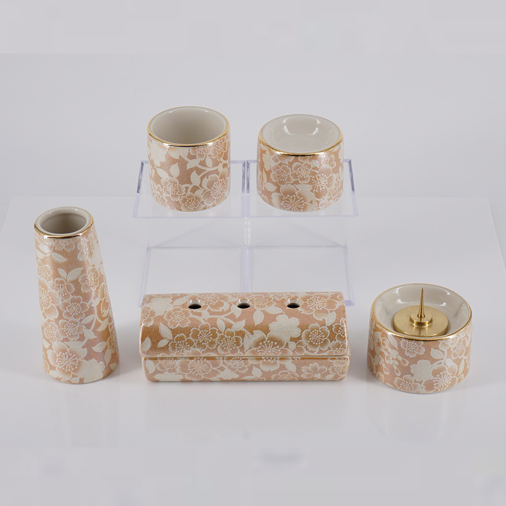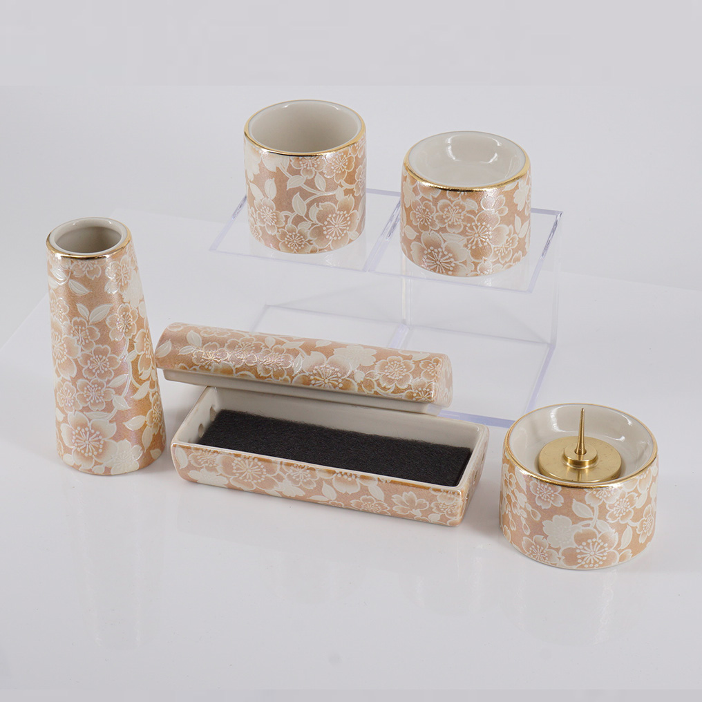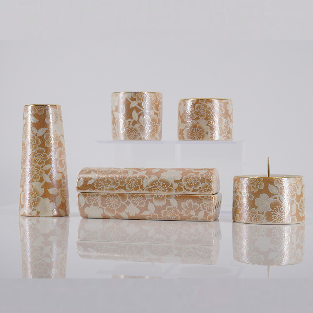 ゆい花(筒型香炉)5点セットシャンパンゴールド