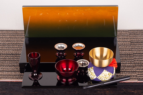伝統的な黒塗りと艶やかなグラデーションが特別な祈りの場を演出します。