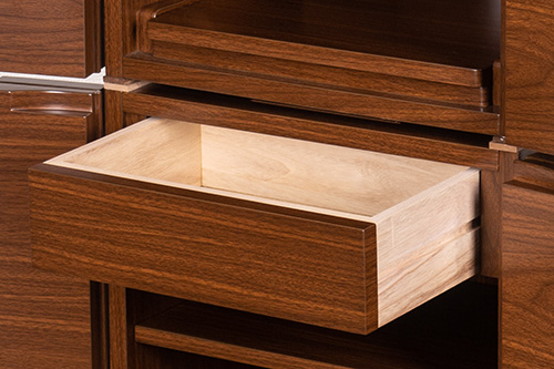 『ウォールナット調』の木目プリントを貼ることによって、安定した木目が可能になり、親しみ易い飽きのこない色調を表現しております。
